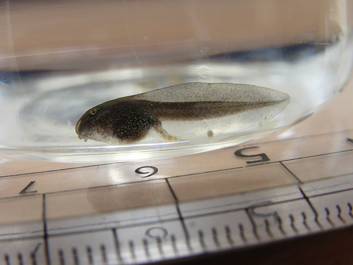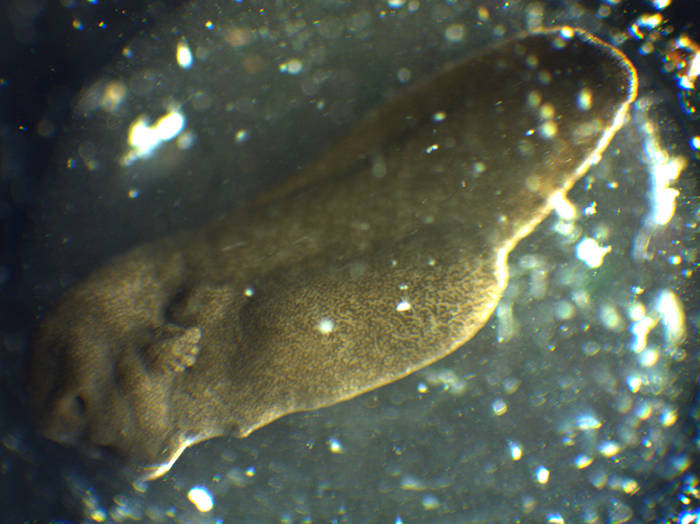 3月9日14時頃、外エラのなくなったオタマジャクシを背側から撮影しました。